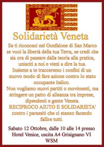 LIFE Veneto organizza per sabato 12 ottobre 2013 dalle ore 10 alle ore 14, presso l’Hotel Venice a Grisignano di Zocco (VI), un incontro aperto a tutti i movimenti politici veneti, ad aziende e singoli cittadini.